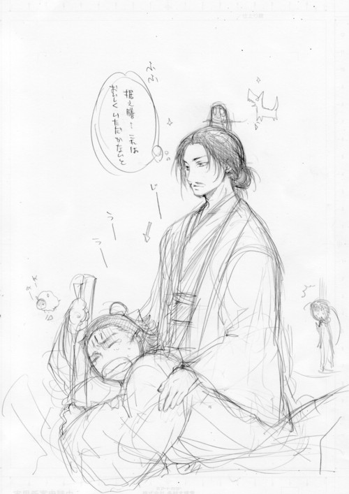 陸遜の膝枕で寝てる呂蒙・・、もちろん陸遜が寝ていた呂蒙
