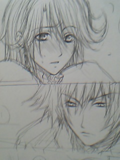 これでいくと平八が近くで久蔵を見上げたアングルなんですが・・久蔵さんがまっすぐ向いたままの状態にしろこれでは身長差ありすぎるかも・・・と。汗